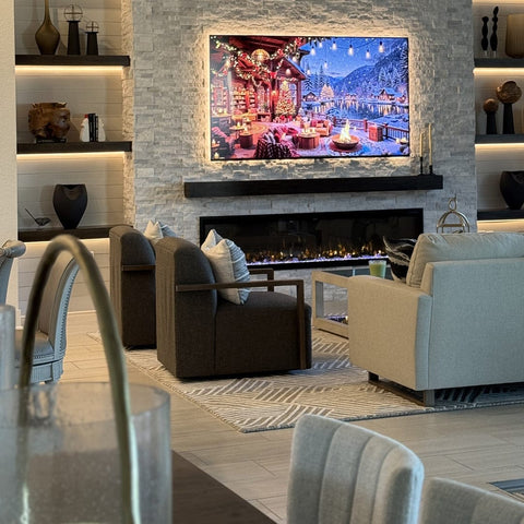 Browse festive Touchstone® electric fireplaces decked out for the holidays. Get holiday decorating ideas and inspiration from fellow Touchstone® customers and share yours. Submit a product review and easily include photos and videos. Or post them on Instagram and Facebook and tag @touchstonehomeproducts. Thank you for sharing!